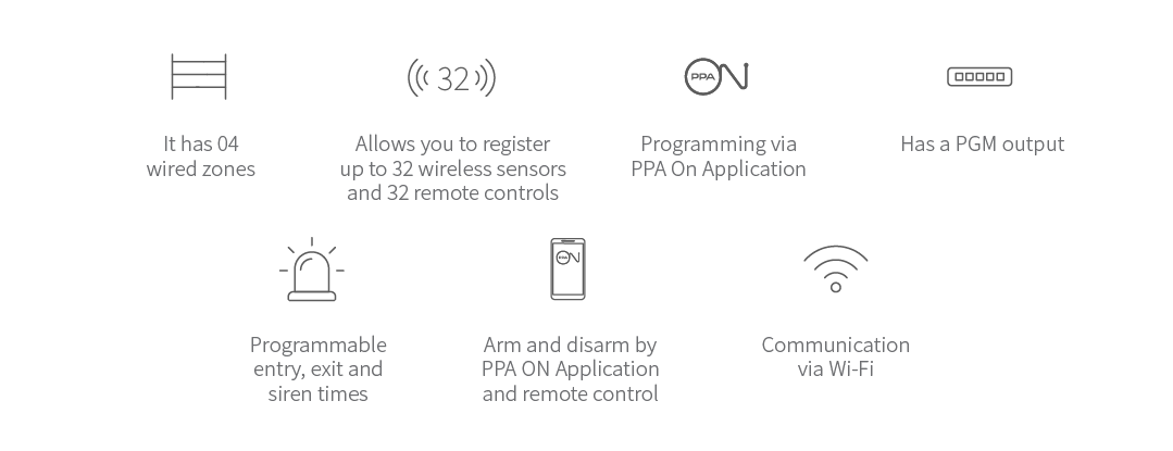 High connectivity alarm that easily integrates with your smartphone, allowing you to turn on, off and receive notifications anywhere, anytime. All this through the PPA On application.