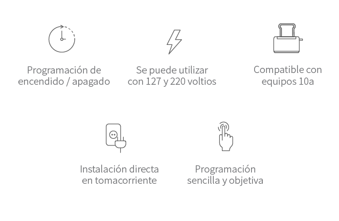 Atrás quedaron los días en que una toma de corriente solo servía para conectar electrodomésticos a la red eléctrica. Hoy, con tanta tecnología, los puntos de venta no podían quedarse fuera. La toma inteligente de 10 A y el módulo de relé Wi-Fi le permiten encender o apagar casi cualquier equipo electrónico en su hogar, con solo un clic en su teléfono celular, sin importar dónde se encuentre. El sistema también permite monitorizar el consumo energético de los equipos conectados. Para hacer su vida aún más fácil, simplemente conéctelo y disfrute.
