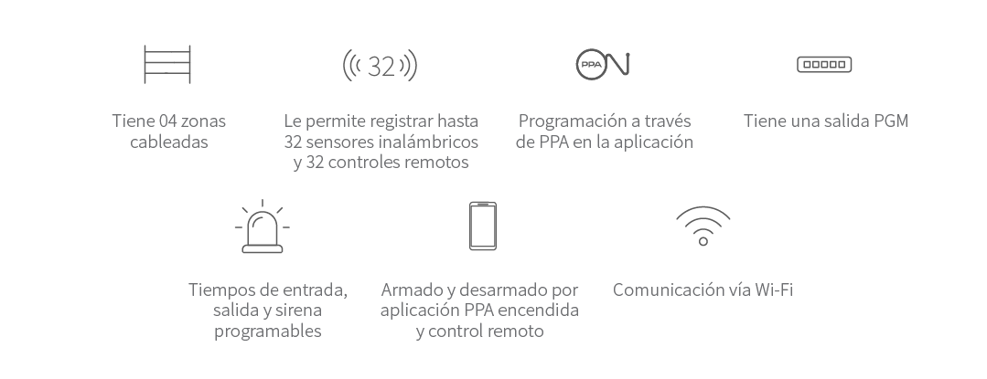 Alarma de alta conectividad que se integra fácilmente con su teléfono inteligente, lo que le permite encender, apagar y recibir notificaciones en cualquier lugar y en cualquier momento. Todo esto a través de la aplicación PPA On.